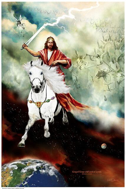 Revelation 19:11- 16 “Then I saw heaven standing open, and there before me was a white horse. And its rider is called Faithful and True. With righteousness He judges and wages war. He has eyes like blazing fire, and many royal crowns on His head. He has a name written on Him that only He Himself knows. He is dressed in a robe dipped in blood, and His name is The Word of God.