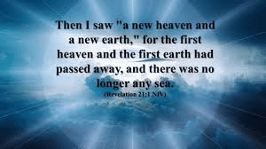 Revelation 21:1”Then I saw a new heaven and a new earth, for the first heaven and earth had passed away, and the sea was no more.”
