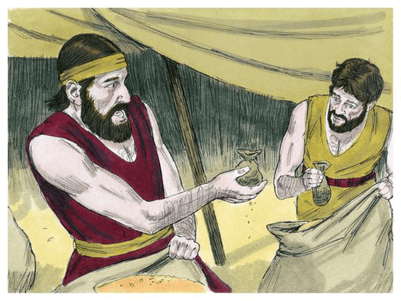 v. 11 – 15 “Then their father Israel said to them, “If it must be so, then do this: Put some of the best products of the land in your packs and carry them down as a gift for the man—a little balm and a little honey, spices and myrrh, pistachios and almonds. Take double the silver with you so that you may return the silver that was put back into the mouths of your sacks. Perhaps it was a mistake. Take your brother as well, and return to the man at once. May God Almighty grant you mercy before the man, that he may release your other brother along with Benjamin. As for me, if I am bereaved, I am bereaved.” So the men took these gifts, along with double the amount of silver, and Benjamin as well. They made their way down to Egypt and stood before Joseph.”