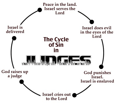 3. When things began going wrong, the Israelites never repented; instead, a new cycle sprang up. Israel would fall away from the Lord/their enemies would attack/Israel would cry out to the Lord/God would send a righteous judge/Israel would follow the Lord as long as the judge was alive/ the judge would die and the mess would start all over again.