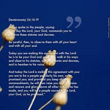Deuteronomy 26:16 – 19 “The LORD your God commands you this day to follow these statutes and ordinances. You must be careful to follow them with all your heart and with all your soul.