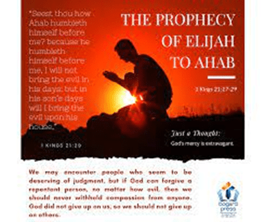 Then the word of the LORD came to Elijah the Tishbite, saying: “Have you seen how Ahab has humbled himself before Me? Because he has humbled himself before Me, I will not bring the calamity during his days, but I will bring it upon his house in the days of his son.”