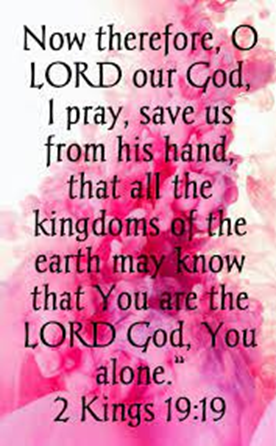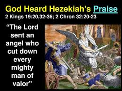 2 Kings 19:20 – 37 Sennacherib’s Fall Prophesied (Isaiah 37:21–35) “Then Isaiah son of Amoz sent a message to Hezekiah: “This is what the LORD, the God of Israel, says: I have heard your prayer concerning Sennacherib king of Assyria. This is the word that the LORD has spoken against him: ‘The Virgin Daughter of Zion despises you and mocks you; the Daughter of Jerusalem shakes her head behind you. Whom have you taunted and blasphemed? Against whom have you raised your voice and lifted your eyes in pride? Against the Holy One of Israel! Through your servants you have taunted the Lord, and you have said: “With my many chariots I have ascended to the heights of the mountains, to the remote peaks of Lebanon. I have cut down its tallest cedars, the finest of its cypresses. I have reached its farthest outposts, the densest of its forests. I have dug wells and drunk foreign waters. With the soles of my feet, I have dried up all the streams of Egypt.”