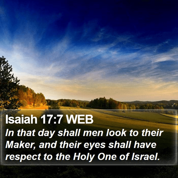 In that day men will look to their Maker and turn their eyes to the Holy One of Israel. They will not look to the altars they have fashioned with their hands or to the Asherahs and incense altars they have made with their fingers. In that day their strong cities will be like forsaken thickets and summits, abandoned to the Israelites and to utter desolation. For you have forgotten the God of your salvation and failed to remember the Rock of your refuge. Therefore, though you cultivate delightful plots and set out cuttings from exotic vines— though on the day you plant you make them grow, and on that morning you help your seed sprout— yet the harvest will vanish on the day of disease and incurable pain.