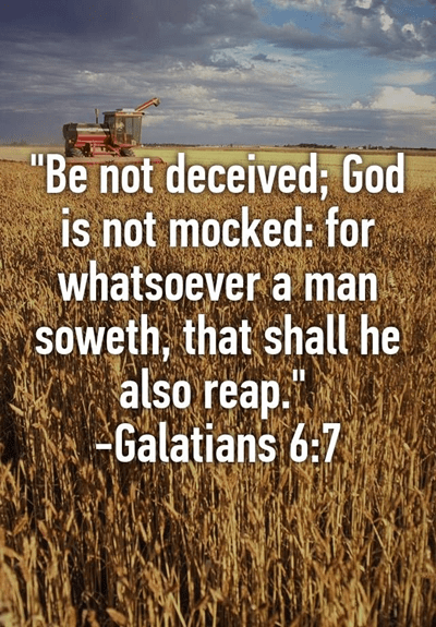 Galatians 6:7 tells us, “Be not deceived; God is not mocked: for whatsoever a man soweth, that shall he also reap.” My late stepmother was a highly decorated newspaper editor who had survived newsroom politics for decades. My stepmom’s favorite saying was, “What goes around, comes around.”