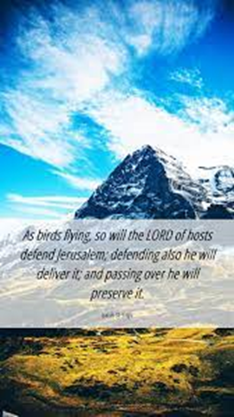 Despite the persistence of unbelief by the people of Judah and Jerusalem, God promises that He will protect Jerusalem. “Like birds hovering overhead, so the LORD of Hosts will protect Jerusalem. He will shield it and deliver it; He will pass over it and preserve it.” Return to the One against whom you have so blatantly rebelled, O children of Israel. For on that day, every one of you will reject the idols of silver and gold that your own hands have sinfully made.”
