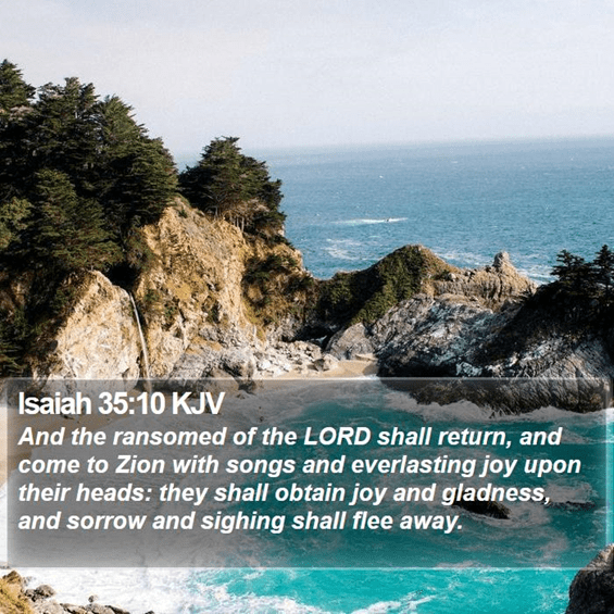And there will be a highway called the Way of Holiness. The unclean will not travel it—only those who walk in the Way—and fools will not stray onto it. No lion will be there, and no vicious beast will go up on it. Such will not be found there, but the redeemed will walk upon it, and the ransomed of the LORD will return. They will enter Zion with singing, crowned with everlasting joy. Joy and gladness will overtake them, and sorrow and sighing will flee.”
