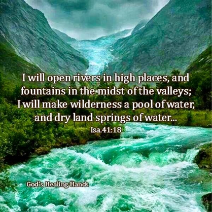 - God can rearrange the landscape as He chooses. “I will open rivers on the barren heights, and fountains in the middle of the valleys. I will turn the desert into a pool of water, and the dry land into flowing springs.” Today there is a great deal of discussion about climate change and the events that lead to it; yet, one factor nobody is mentioning is the God who created the earth in the first place.