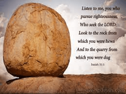 “Listen to Me, you who pursue righteousness, you who seek the LORD: Look to the rock from which you were cut, and to the quarry from which you were hewn. Look to Abraham your father, and to Sarah who gave you birth. When I called him, he was but one; then I blessed him and multiplied him. For the LORD will comfort Zion and look with compassion on all her ruins; He will make her wilderness like Eden and her desert like the garden of the LORD. Joy and gladness will be found in her, thanksgiving and melodious song.
