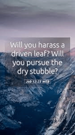““Man, who is born of woman, is short of days and full of trouble…. For there is hope for a tree: If it is cut down, it will sprout again, and its tender shoots will not fail. If its roots grow old in the ground and its stump dies in the soil, at the scent of water it will bud and put forth twigs like a sapling. But a man dies and is laid low; he breathes his last, and where is he?” Job really has a grudge against God and he wants to make sure God knows it! Why should God have made humans so ephemeral, their lives so short, only for them to die and disappear? At least trees can bring forth new buds from stumps. According to Job, God handles trees more fairly than He handles humans. At this point, Job believes he will never have any more children, so there will be nobody to carry on his name.