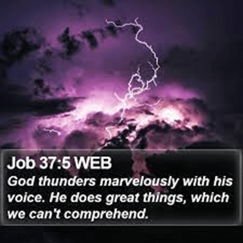 “At this my heart also pounds and leaps from its place. Listen closely to the thunder of His voice and the rumbling that comes from His mouth. He unleashes His lightning beneath the whole sky and sends it to the ends of the earth. Then there comes a roaring sound; He thunders with His majestic voice. He does not restrain the lightning when His voice resounds.