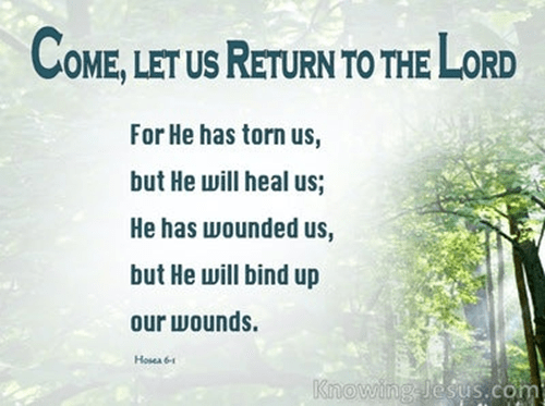 “Return, O Israel, to the LORD your God, for you have stumbled by your iniqu y. Bring your confessions and return to the LORD. Say to Him: “Take away all our iniquity and receive us graciously, that we may present the fruit of our lips. Assyria will not save us, nor will we ride on horses. We will never again say, ‘Our gods!’ to the work of our own hands. For in You the fatherless find compassion.”