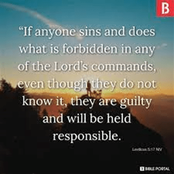 Finally, “If someone sins and violates any of the LORD’s commandments even though he was unaware, he is still guilty and shall bear his punishment.” Again, the repayment is an unblemished ram, indicating that such a sin is very serious.