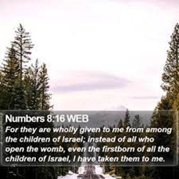 “And you shall stand the Levites before Aaron and his sons, and then offer them like a wave offering to the Lord. Thus you shall separate the Levites from among the children of Israel, and the Levites shall be Mine. After that the Levites shall go in to service the tabernacle of meeting. So you shall cleanse them and offer them like a wave offering. For they are wholly given to Me from among the children of Israel; I have taken them for Myself instead of all who open the womb, the firstborn of all the children of Israel. For all the firstborn among the children of Israel are Mine, both man and beast; on the day that I struck all the firstborn in the land of Egypt I sanctified them to Myself. I have taken the Levites instead of all the firstborn of the children of Israel. And I have given the Levites as a gift to Aaron and his sons from among the children of Israel, to do the work for the children of Israel in the tabernacle of meeting, and to make atonement for the children of Israel, that there be no plague among the children of Israel when the children of Israel come near the sanctuary.”