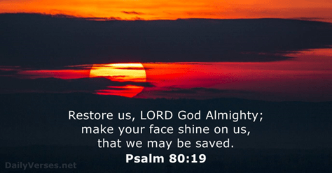 “Return, we beseech You, O God of hosts; look down from heaven and see, and visit this vine and the vineyard which Your right hand has planted, and the branch that You made strong for Yourself. It is burned with fire, it is cut down; they perish at the rebuke of Your countenance. Let Your hand be upon the man of Your right hand, upon the son of man whom You made strong for Yourself. Then we will not turn back from You; revive us, and we will call upon Your name. Restore us, O Lord God of hosts; cause Your face to shine, and we shall be saved!”