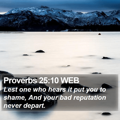 “Even what you have seen with your own eyes, do not go out to argue in haste. Otherwise, what will you do in the end when your opponent puts you to shame? Argue your case with your neighbor without betraying another’s confidence, lest the one who hears may disgrace you, and your infamy never go away.” Repeatedly, the Bible warns against bearing false witness; however, this statement carries things even further. Here we are advised to be discrete, refusing to leap into arguments. Even if you are an eye witness, how do you know that you have interpreted events properly? Perhaps you have seen something and have then jumped to a totally wrong conclusion. The results may be very hurtful and you may destroy friendships in the process. One of the most frustrating things about being a police officer investigating an accident or a crime is the number of different interpretations various witnesses will put on the same event. No matter how much we try to be honest, we will always analyze things in the light of our emotions and experience.