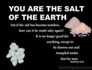 Matthew 5: 13 “You are the salt of the earth; but if the salt loses its flavor, how shall it be seasoned? It is then good for nothing but to be thrown out and trampled underfoot by men.