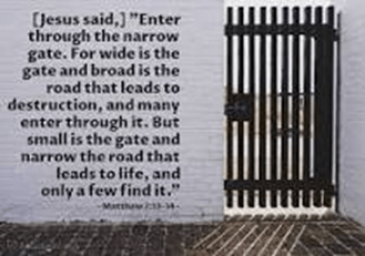 “Enter by the narrow gate; for wide is the gate and broad is the way that leads to destruction, and there are many who go in by it. Because [how] narrow is the gate and [confined] difficult is the way which leads to life, and there are few who find it.”
