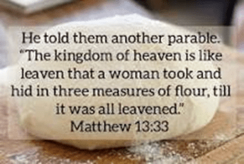 Another parable He spoke to them: “The kingdom of heaven is like leaven, which a woman took and hid in three measures of meal till it was all leavened.”