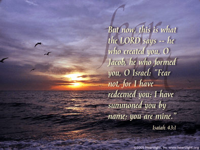 Isaiah 43:1-4 “But now, thus says the Lord, who created you, O Jacob, and He who formed you, O Israel: “Fear not, for I have redeemed you; I have called you by your name; you are Mine. When you pass through the waters, I will be with you; and through the rivers, they shall not overflow you. When you walk through the fire, you shall not be burned, nor shall the flame scorch you. For I am the Lord your God, the Holy One of Israel, your Savior;
