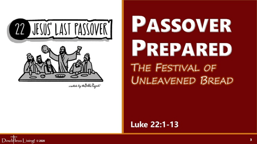 Then came the Day of Unleavened Bread, when the Passover must be killed. And He sent Peter and John, saying, “Go and prepare the Passover for us, that we may eat.”
