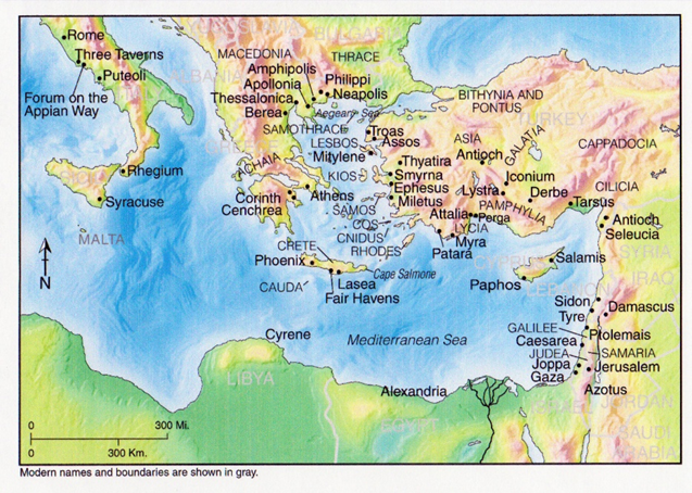 “Then we went ahead to the ship and sailed to Assos, there intending to take Paul on board; for so he had given orders, intending himself to go on foot. And when he met us at Assos, we took him on board and came to Mitylene. We sailed from there, and the next day came opposite Chios. The following day we arrived at Samos and stayed at Trogyllium. The next day we came to Miletus. For Paul had decided to sail past Ephesus, so that he would not have to spend time in Asia; for he was hurrying to be at Jerusalem, if possible, on the Day of Pentecost.”
