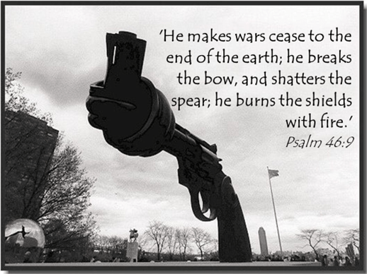 Psalm 46:9 “He makes wars to cease throughout the earth; He breaks the bow and shatters the spear; He burns the shields in the fire.”