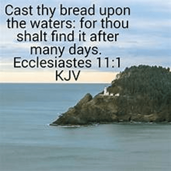 11:1-8 Cast your bread upon the waters, for you will find it after many days. Give a serving to seven, and also to eight, for you do not know what evil will be on the earth. If the clouds are full of rain, they empty themselves upon the earth; and if a tree falls to the south or the north, in the place where the tree falls, there it shall lie.