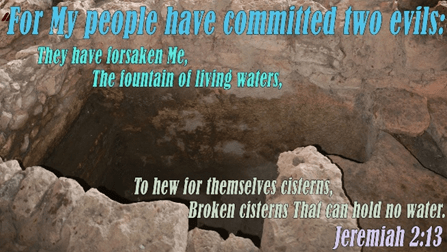 Centuries after Abram has become Abraham, father of nations, and a pillar of faith, the Israelites have again forsaken God and His promises. Jeremiah 2:13 tells us, “For My people have committed two evils: They have forsaken Me, the fountain of living waters, and hewn themselves cisterns—broken cisterns that can hold no water.”