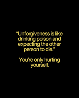 It’s true that “unforgiveness is like drinking poison and expecting the other person to die.” Ephesians 4:31-32 advises, “Stop being mean, bad-tempered, and angry. Quarreling, harsh words, and dislike of others should have no place in your lives. Instead, be kind to each other, tenderhearted, forgiving one another, just as God has forgiven you because you belong to Christ.”