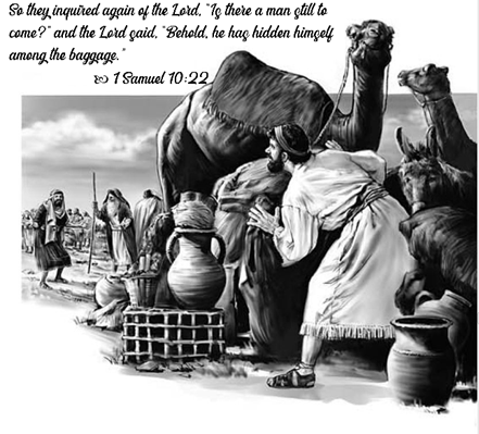 1 Samuel 10:20-24 So Samuel brought all the tribes of Israel before the Lord, and the tribe of Benjamin was chosen by lot. Then he brought each family of the tribe of Benjamin before the Lord, and the family of the Matrites was chosen. And finally Saul son of Kish was chosen from among them. But when they looked for him, he had disappeared! So they asked the Lord, “Where is he?”