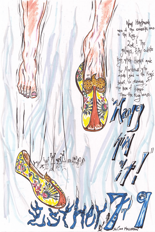 Why is Harbonah, one of the eunuchs attending the king, so willing to tell the king about the gallows Haman has already erected? Remember that Haman has been lording it over everyone he meets, forcing them to rise and then to bow in his presence. Harbonah has worked in the palace long enough to know royalty when he sees it and also to recognize a villain when he sees one. It’s likely that Haman has demanding that all the palace servants not merely bow but literally plant their faces on the floor when he walks by. Perhaps Haman is also a mean drunk who has abused the palace servants while Xerxes and he were getting plastered together. Any abuse of a servant would be reported immediately to all the other servants; who knows who might be the next target of Haman’s arrogance? Haman is just that kind of guy. Now the day of pay-backs has come and Harbonah is more than willing to drop a word in the ear of King Xerxes, suggesting Haman be hanged on his own gallows. “Perfect!” thinks Xerxes. “What could be better than hanging Haman on a gallows in front of his own home so everyone can see his downfall?” Remember that Xerxes thinks Haman has attacked Esther, so no punishment is really sufficient for such dastardly behavior.