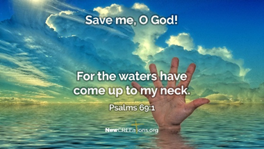 Caught in a flood? You can echo the prayer in verses 16-17. O Jehovah, answer my prayers, for your loving-kindness is wonderful; your mercy is so plentiful, so tender and so kind. Don’t hide from me, for I am in deep trouble. Quick! Come and save me. \